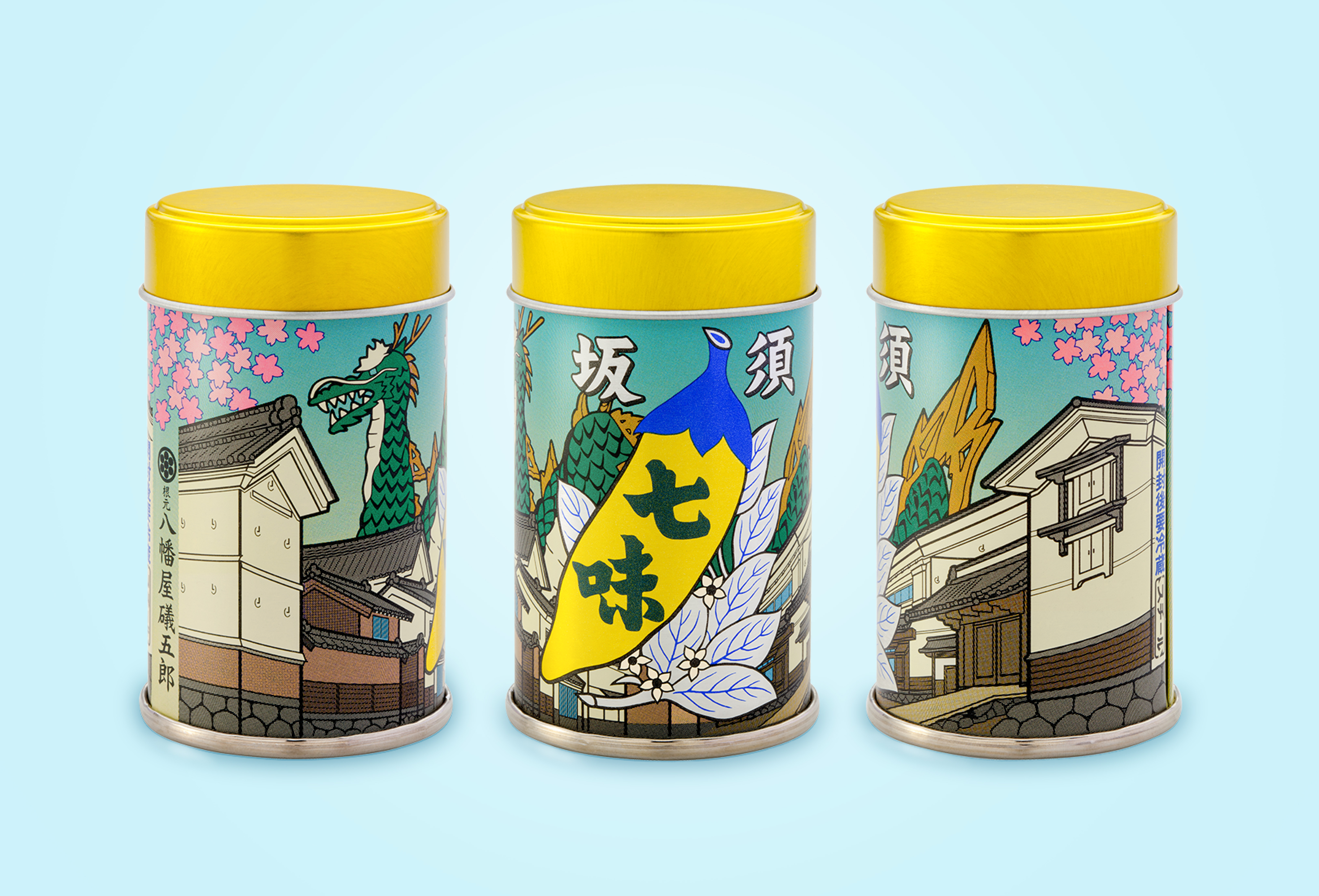 【八幡屋礒五郎】桜・蔵の町・竜が食卓の上に!須坂の町をあしらった限定缶が新登場!