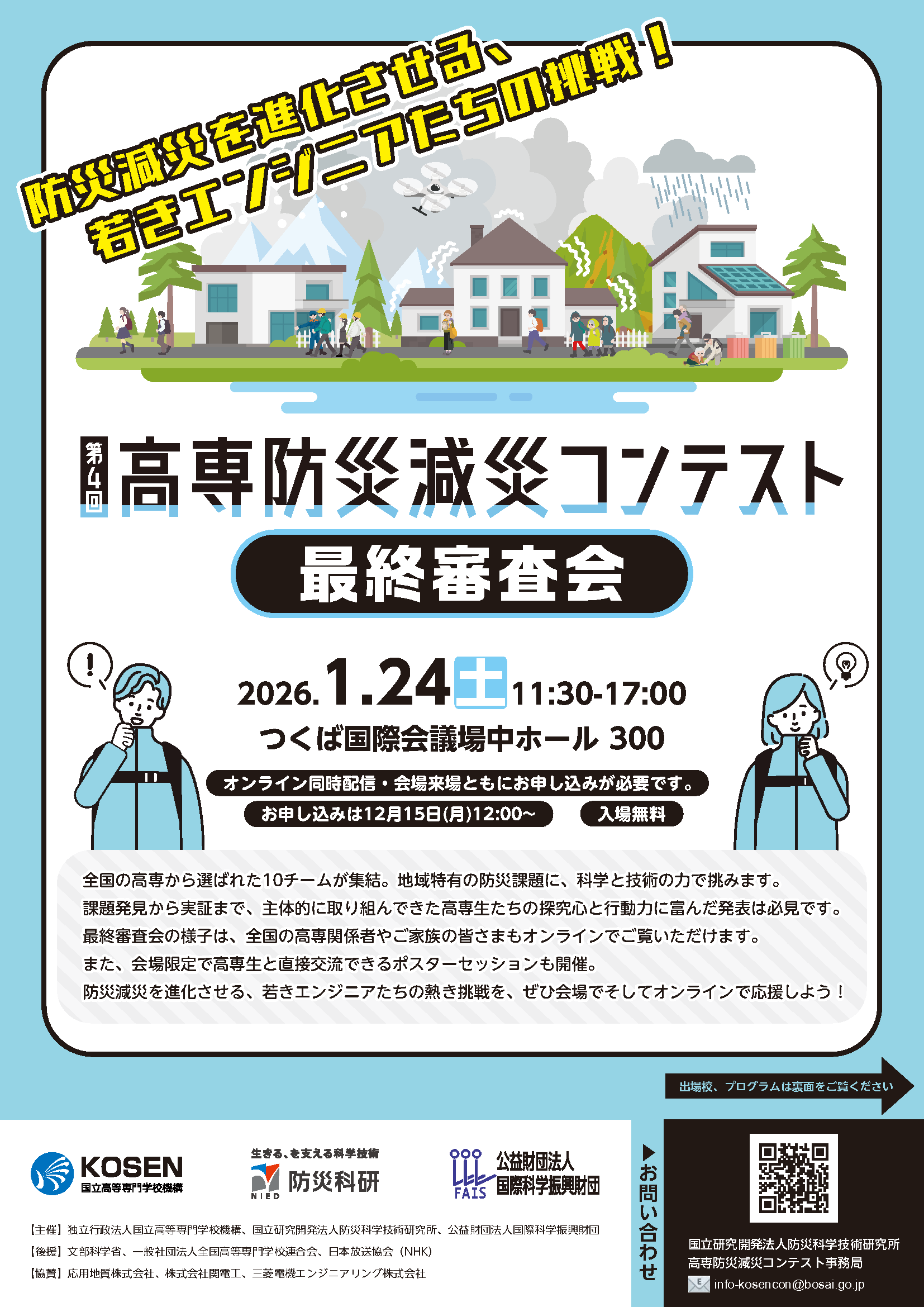 「第4回高専防災減災コンテスト 最終審査会」を1月24日(土)につくば国際会議場で開催!