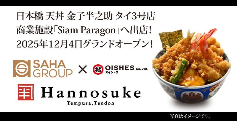 オイシーズ、タイ王国内「日本橋 天丼 金子半之助」3号店「Siam Paragon(サイアム・パラゴン)店」2025年12月4日(木) グランドオープン