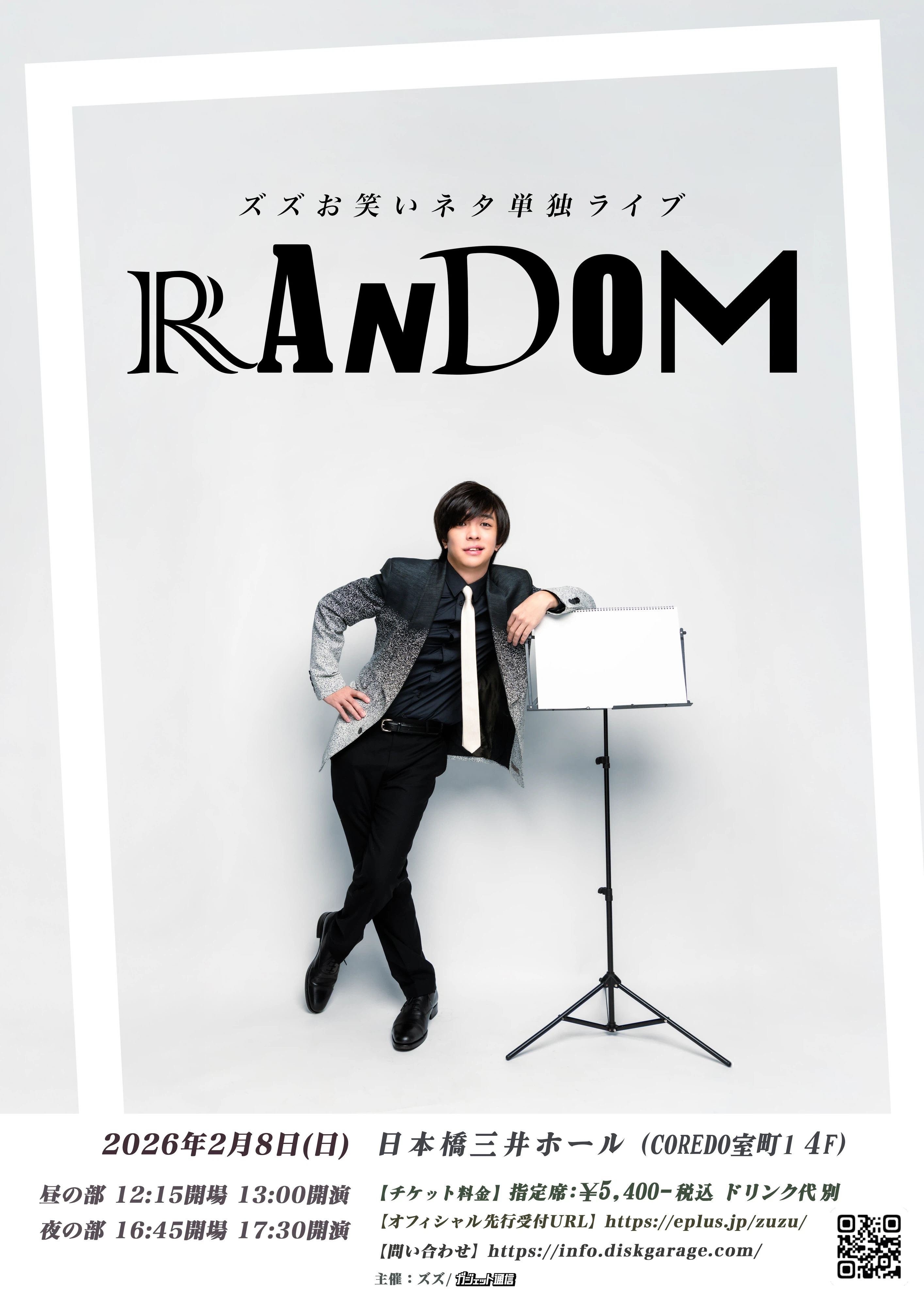 「REJECT」所属ストリーマー・ズズのワンマンライブ『ズズ お笑いネタ単独ライブ “RANDOM”』開催決定