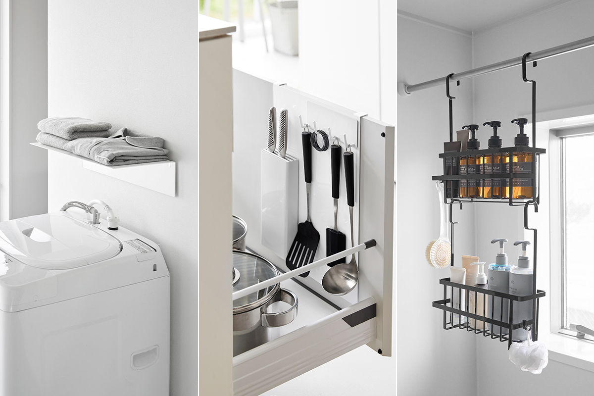 【山崎実業 新商品のお知らせ】 洗濯機上のスペースを有効活用できる収納ラックや、マグネット小物が貼れるスチールパネルなど、新商品が発売になりました。