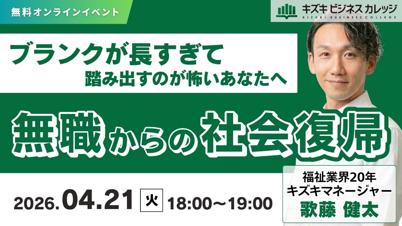 【04/21開催】無職からの社会復帰~ブランクが長すぎて、踏み出すのが怖いあなたへ~【無料/オンライン】
