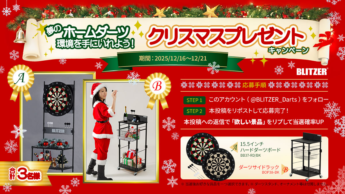 夢のホームダーツ環境を手に入れよう!おうちダーツブランド・ブリッツァーのクリスマスキャンペーンが開始。