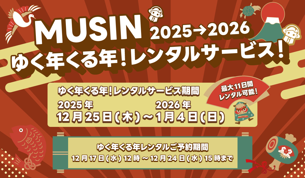 【株式会社MUSIN】年末年始にオーディオ製品をご自宅でお楽しみいただけるキャンペーン『MUSINゆく年くる年!レンタルサービス!2025→2026』12月17日(水)12:00より予約期間スタート!! -