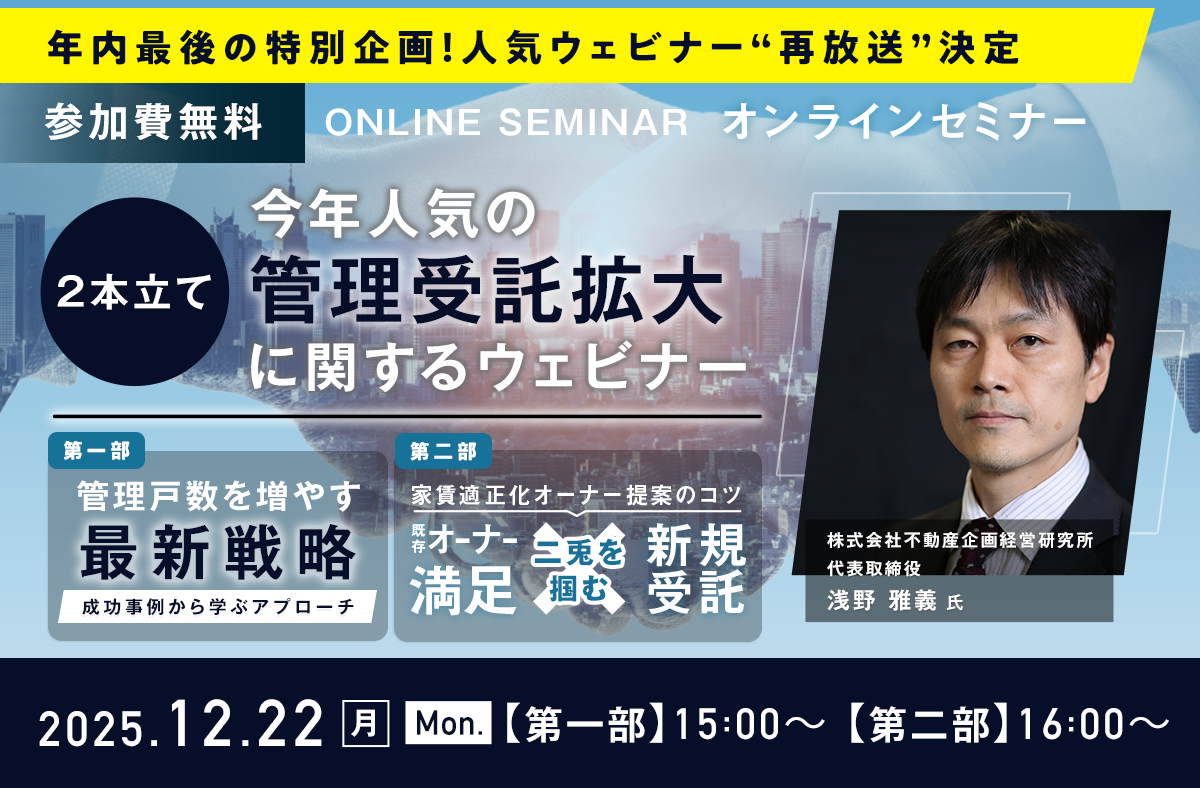【年末特別企画】今年人気だった『管理受託拡大に関するウェビナー』の一挙配信を12月22日(月)に開催 -