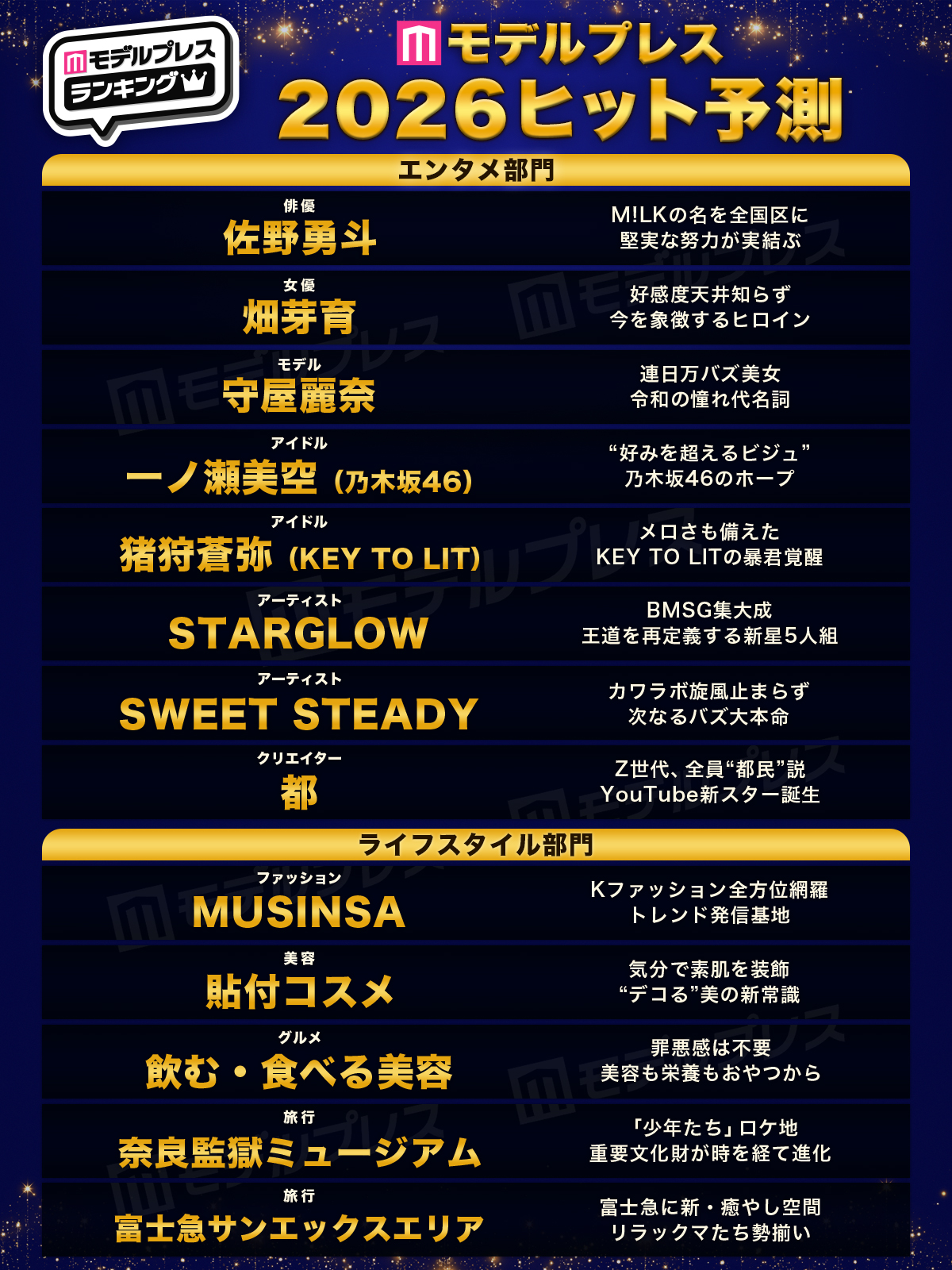 「2026年ヒット予測」エンタメ(俳優・女優)ライフスタイル(ファッション・美容)などのトレンド完全予測【モデルプレス独自調査】…投票数約6万票、女性82.4% -