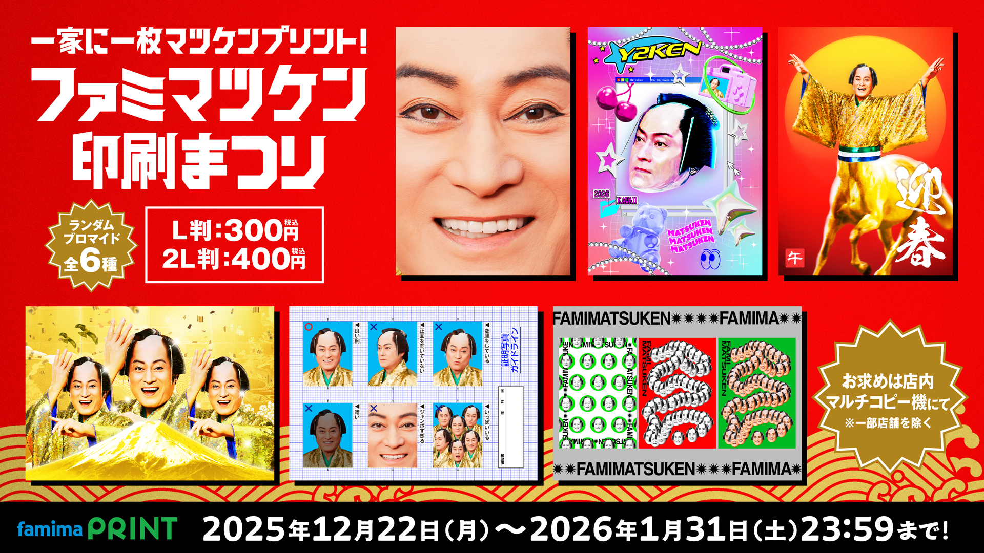 「ファミマツケン」コラボレーションを一挙発表!年賀状にぴったりの松平健さんのブロマイドや、証明写真がステッカーに?対象商品を買うとおめでたいタオルやハンコがもらえるキャンペーンも! -
