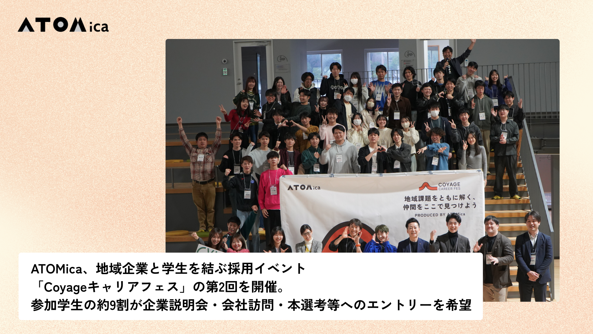 ATOMica、地域企業と学生を結ぶ採用イベント「Coyageキャリアフェス」の第2回を開催。参加学生の約9割が企業説明会・会社訪問・本選考等へのエントリーを希望