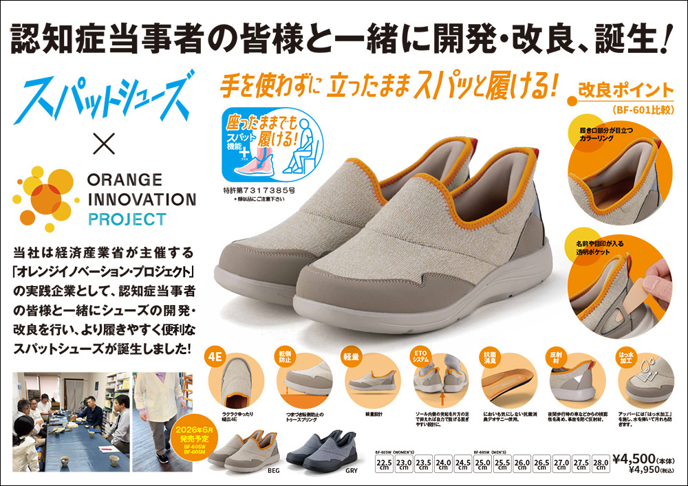 【チヨダ】株式会社チヨダは「オレンジイノベーション・アワード2025 特別賞」を受賞しました!手を使わずにスパッと履ける「スパットシューズ」を認知症当事者の皆様と改良し、新商品を開発しました。