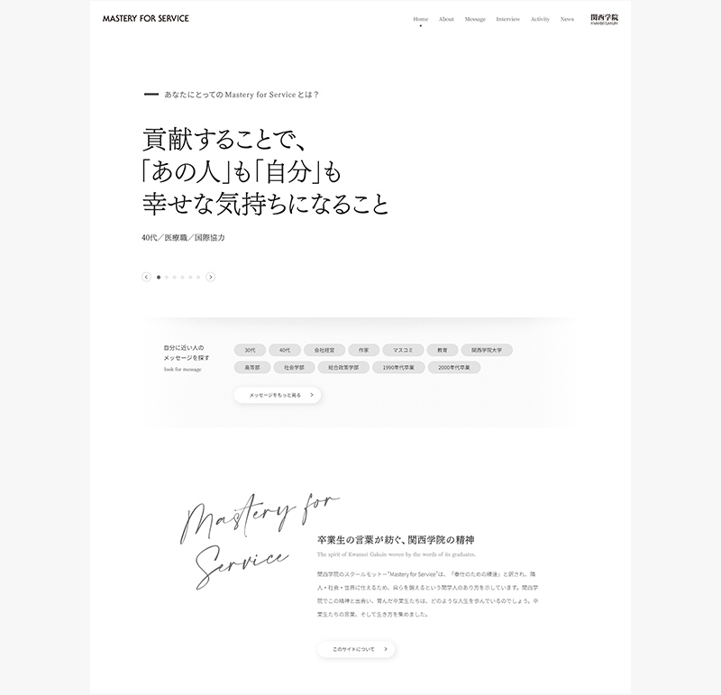 関西学院ブランドサイト『Mastery for Service』が「大学広報メディアアワード 2025」のデジタルコンテンツ部門で金賞を受賞