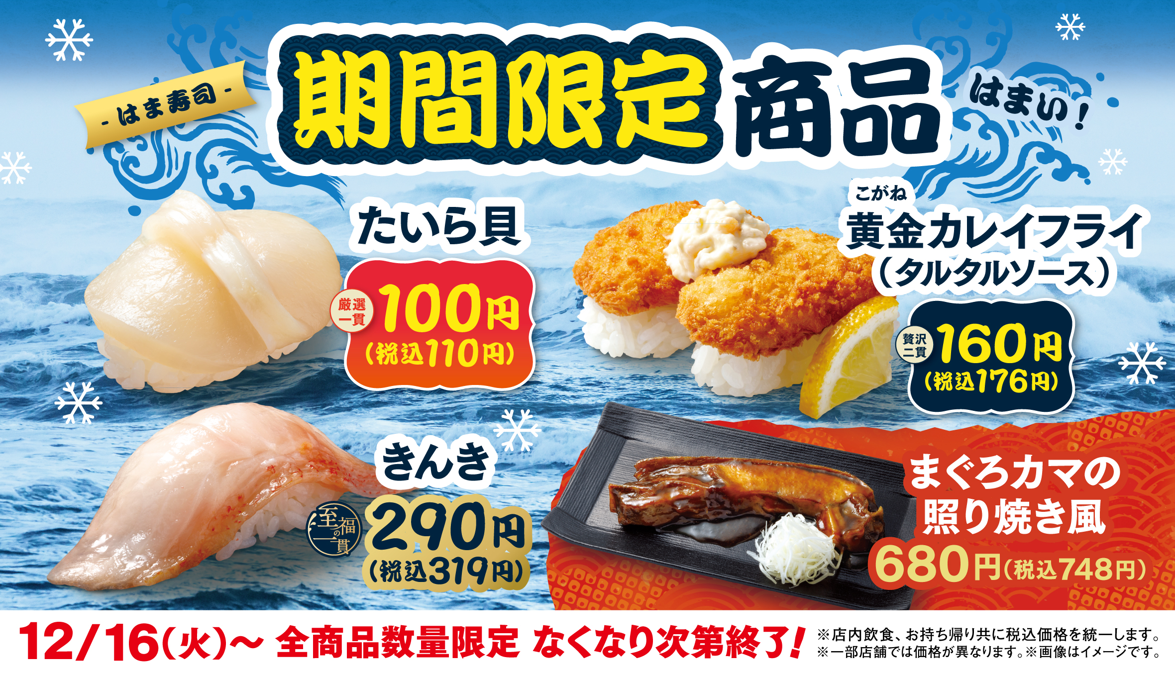 【はま寿司】旨みの詰まったタイラ貝を100円(税込110円)でご提供!高級魚“キンキ”も登場!はま寿司が期間限定商品を販売! -