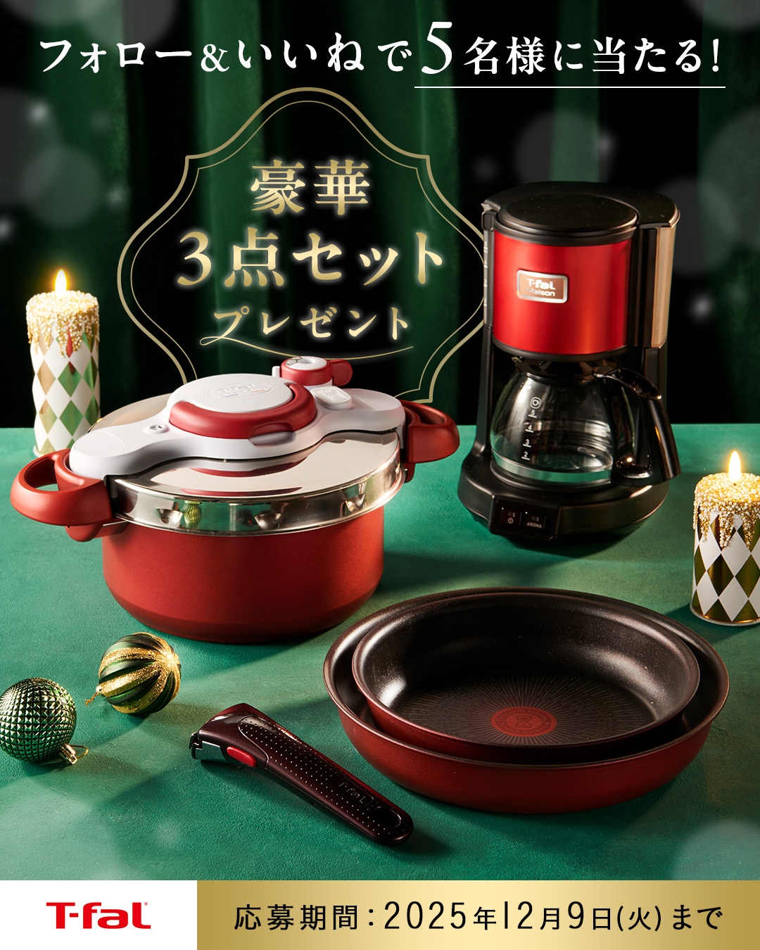 クリスマスを華やかに彩るティファールの豪華3点セットを抽選でプレゼント 公式Instagram & X でプレゼントキャンペーン開催 -