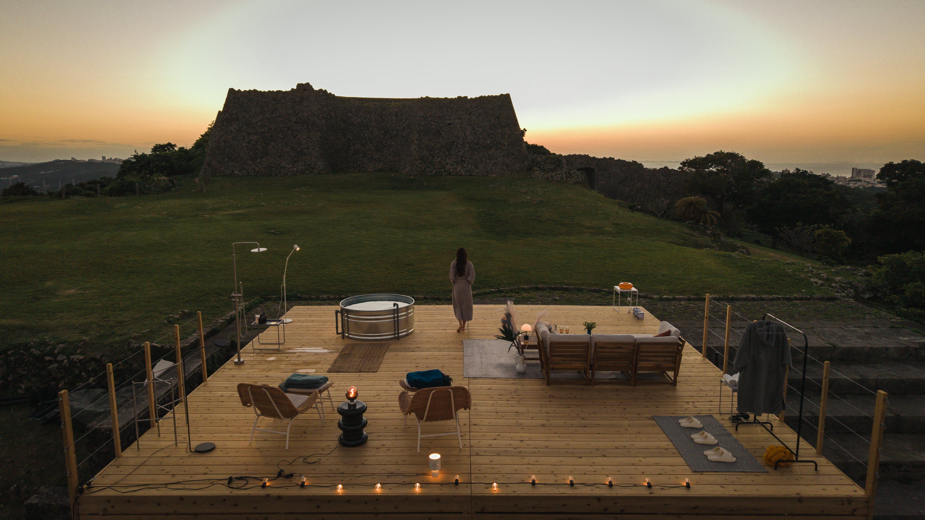 インフラ開発不要で、世界遺産にポップアップリゾートを構築。沖縄県中城村の中城城跡で実証実験開始。無料宿泊体験モニターを募集。 -