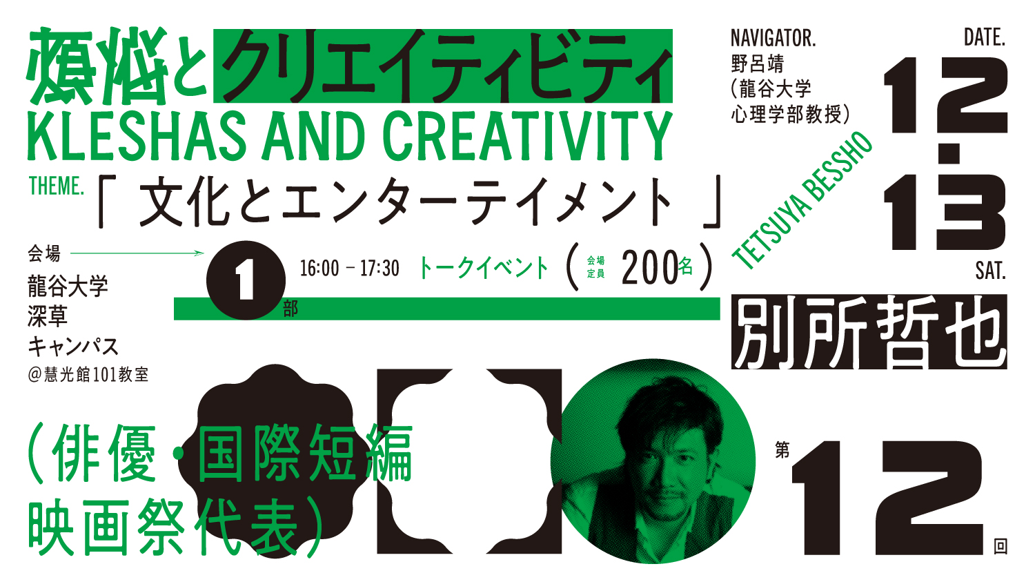煩悩の創造性を探求するプロジェクト「煩悩とクリエィティビティ」(龍谷大学校友会主催) 12/13(土)は 別所 哲也氏(俳優・国際短編映画祭代表)が登壇 ~文化とエンターテイメント~ -