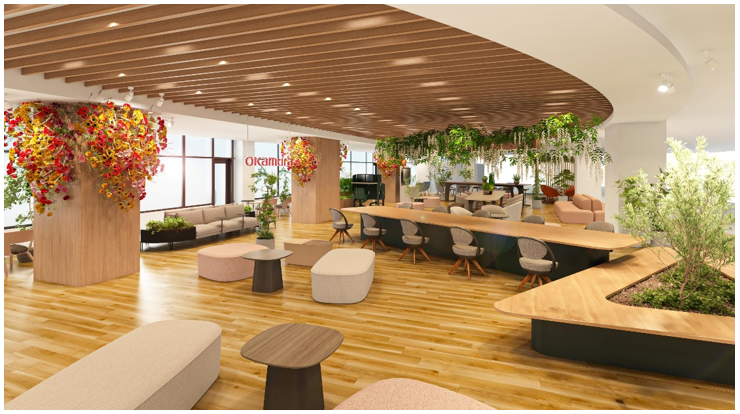成田国際空港の出国審査後エリアに、オカムラのラウンジスペースを設置