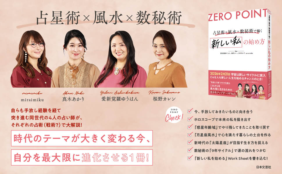 【ゼロポイント】2/21まさにイベント当日に重版決定!人気の占い師4名による【新時代の解説書】『ZERO POINT 占星術×風水×数秘術で描く 新しい私の始め方』