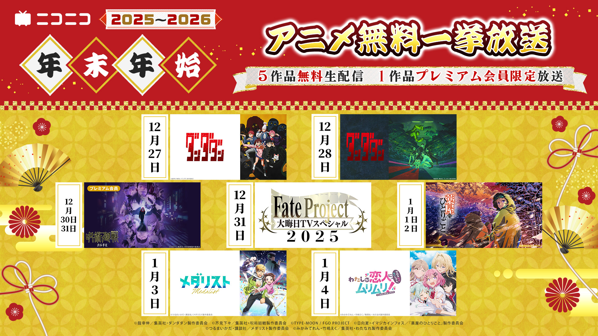 \ニコニコアニメ年末年始企画第1弾/ ニコ生アニメ無料一挙放送が決定 TVアニメ『薬屋のひとりごと』『メダリスト』『ダンダダン』など今年の話題作をラインナップ