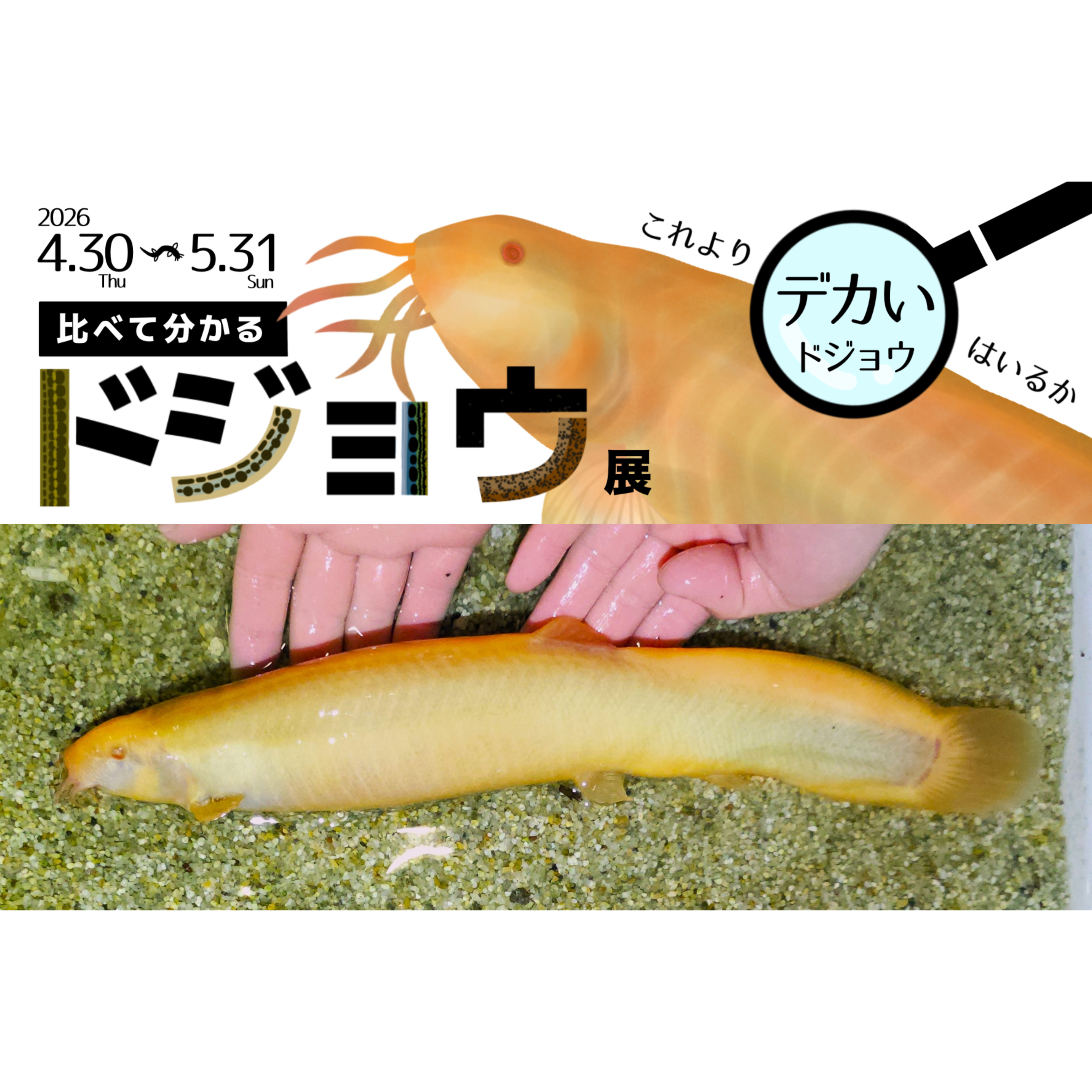 水族館アトアに前代未聞の巨大ドジョウ!? 比べて分かるドジョウ展を開催します!特別企画 「挑戦者求む!デカいドジョウ No.1 を探せ」