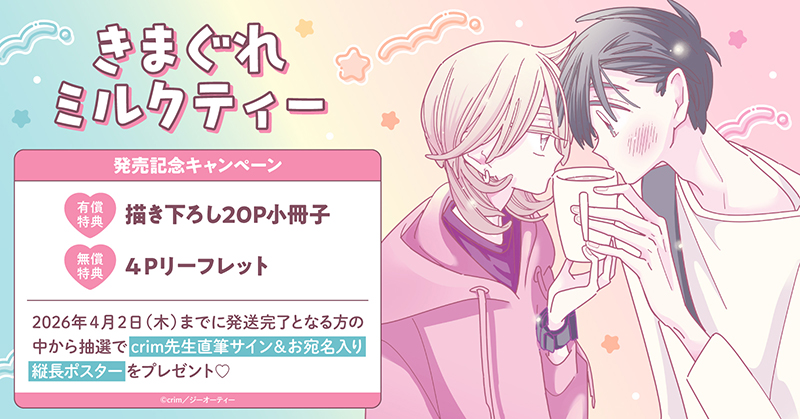 直筆サイン入り縦長ポスターが当たる!crim先生『きまぐれミルクティー』発売記念キャンペーン開催!【ホーリンラブブックス】