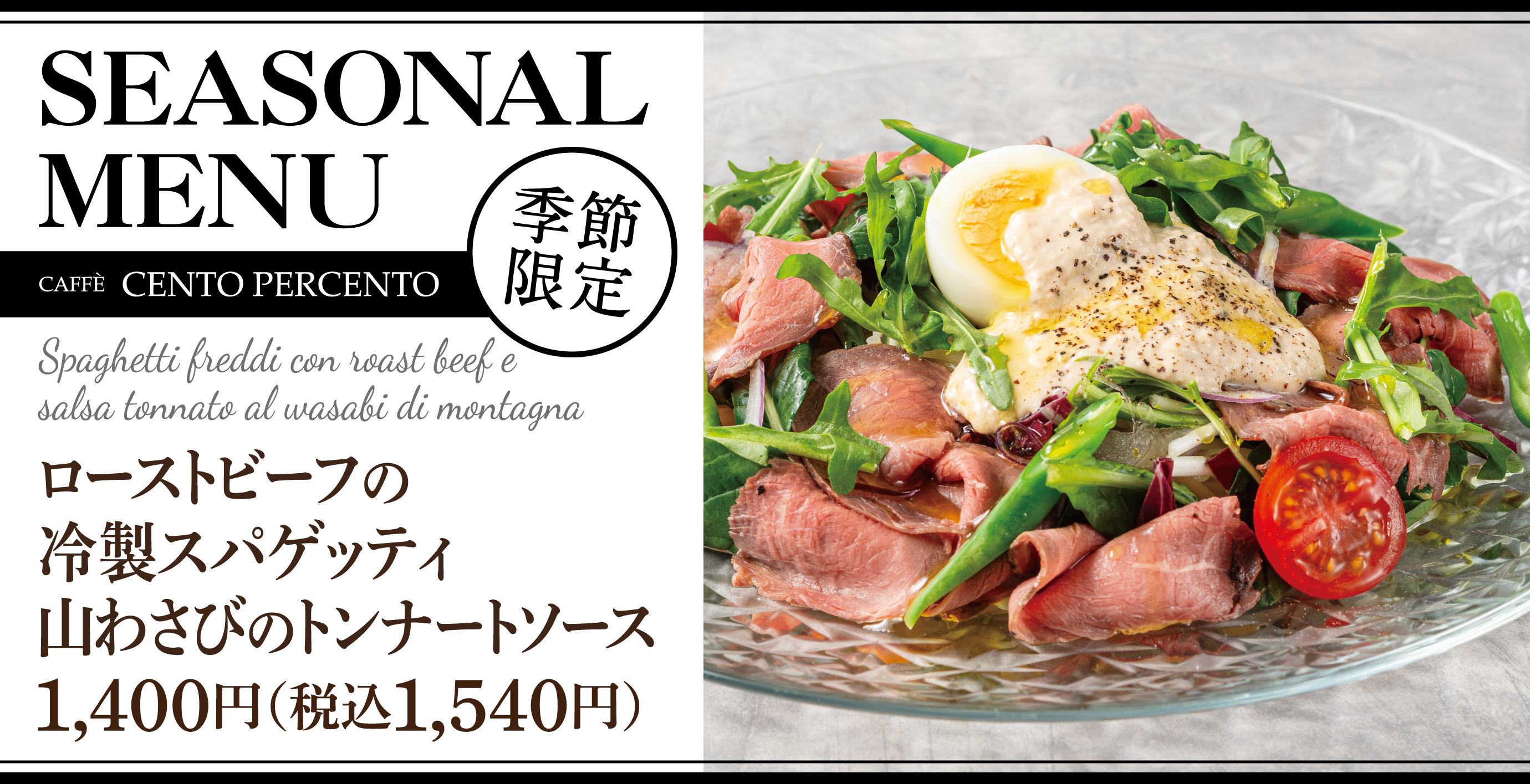 ひんやり、とろけるご褒美時間。「ローストビーフの冷製スパゲッティ」チェントペルチェントにて販売開始!