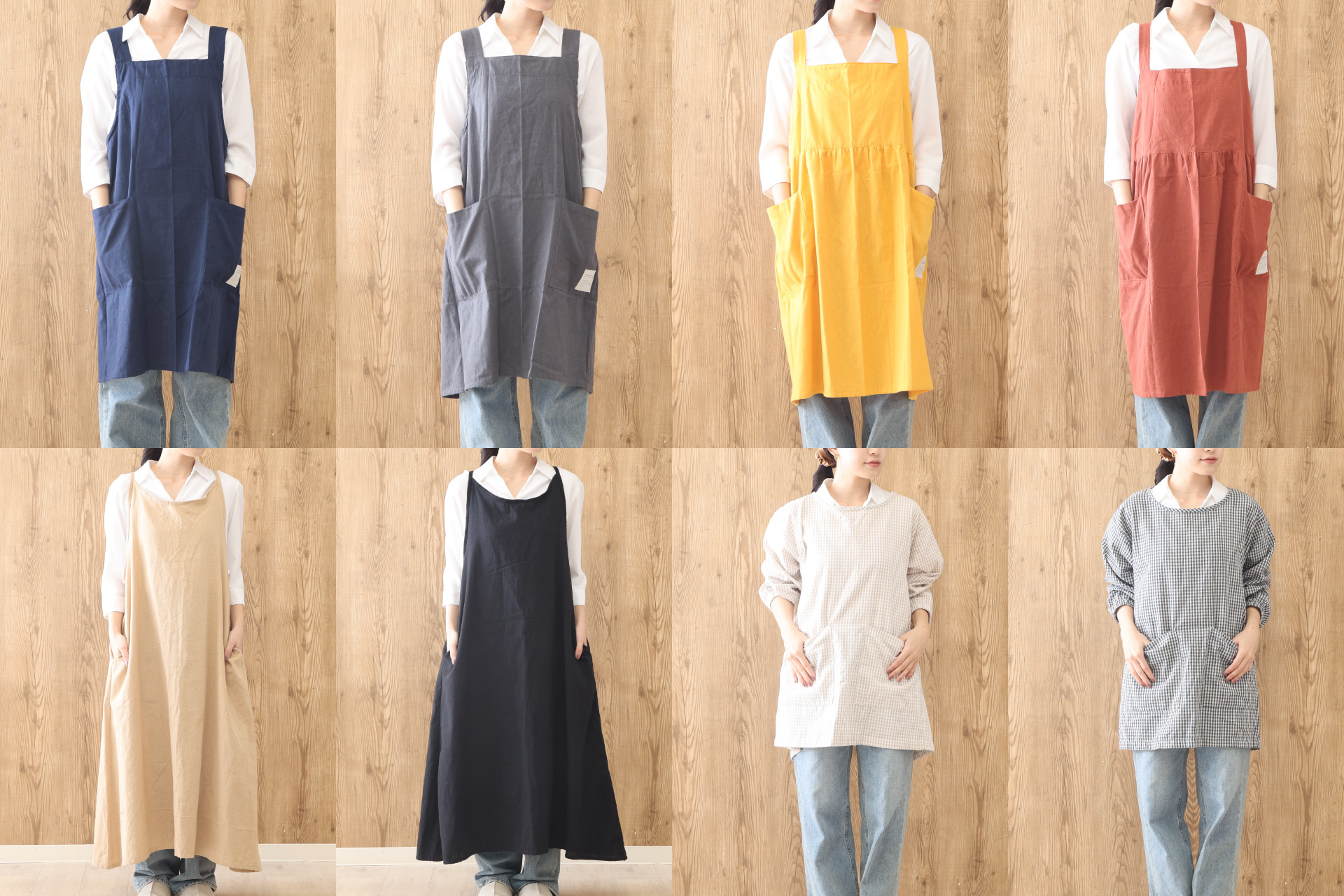 正月モードから日常へ。新年の家事スイッチを入れる「新作エプロン4種(クロス/ギャザー/ワンマイル/割烹着)」を発売。