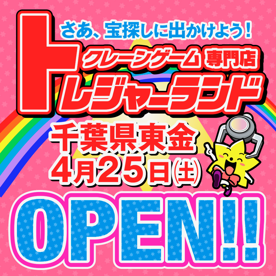 関東初上陸!“激甘・爆取れ”がコンセプトのクレーンゲーム専門店『トレジャーランド東金店』4月25日(土)グランドオープン
