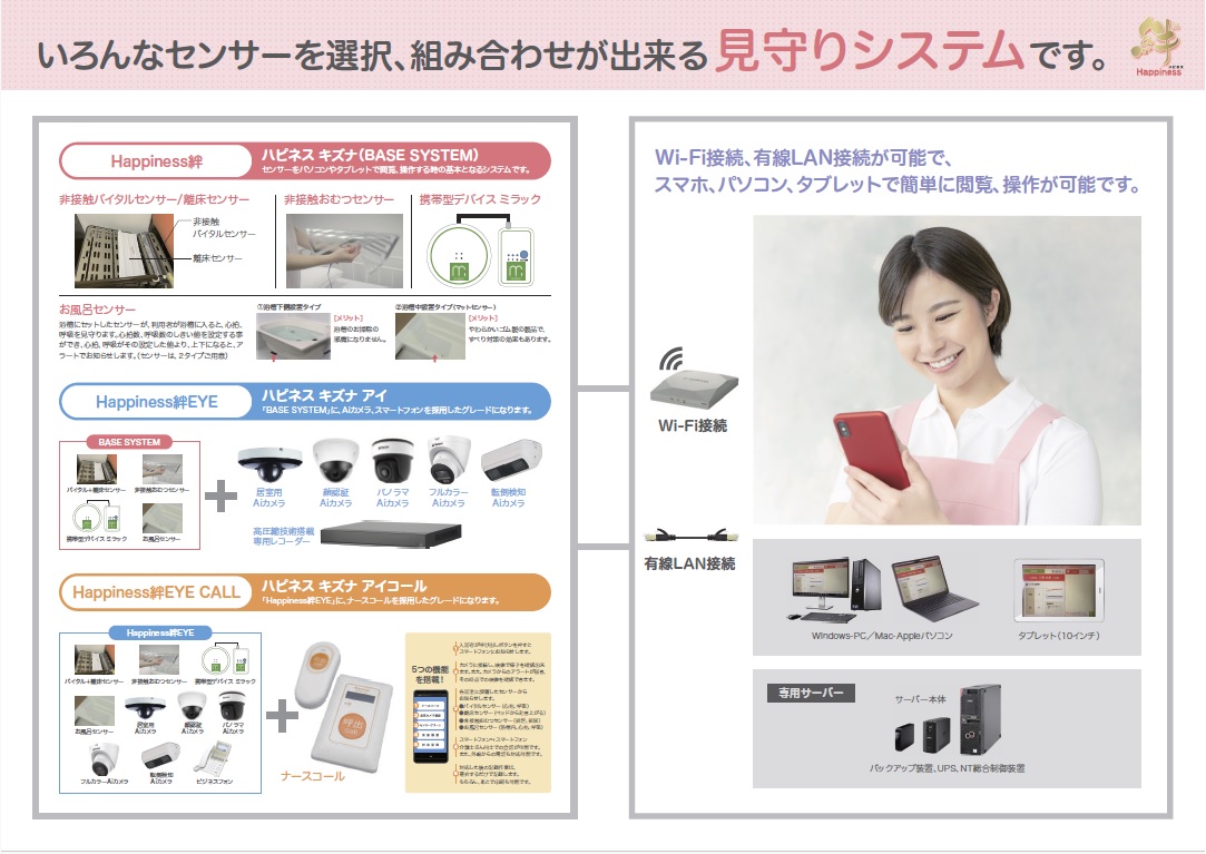 IoT見守りシステム「Happiness絆/ハピネス キズナ」が、ケアテックス東京にて、4ブース、メイン通路沿いで出展します。