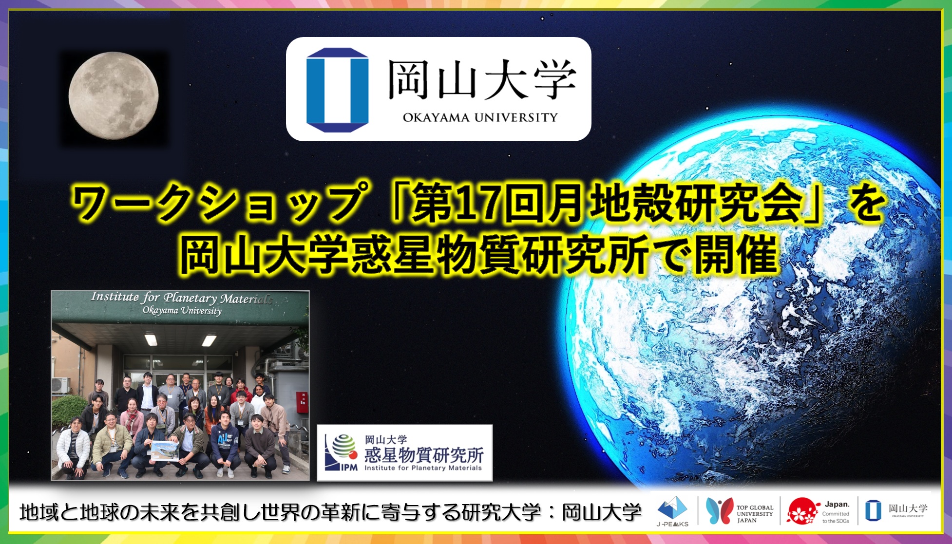 【岡山大学】ワークショップ「第17回月地殻研究会」を岡山大学惑星物質研究所で開催