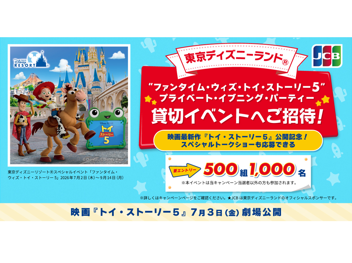 JCB、東京ディズニーランド(R)「“ファンタイム・ウィズ・トイ・ストーリー5”プライベート・イブニング・パーティー」貸切イベントへ1,000名様をご招待!