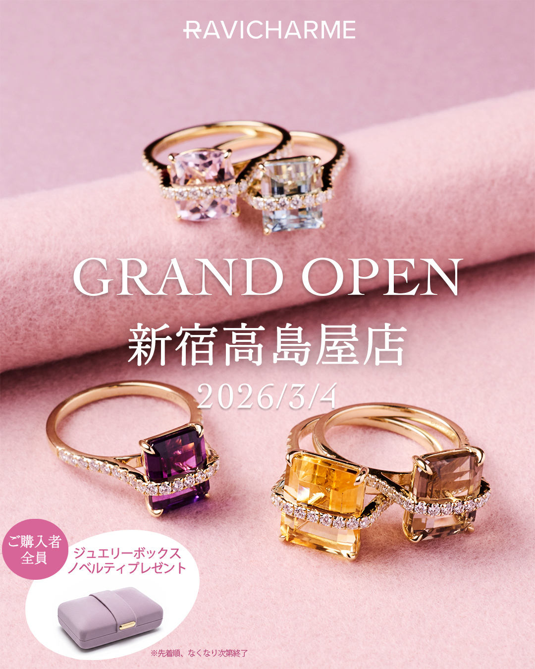 【初百貨店常設店】ジュエリーブランド「RAVICHARME(ラヴィシャルム)」が2026年3月4日、新宿高島屋にグランドオープン!