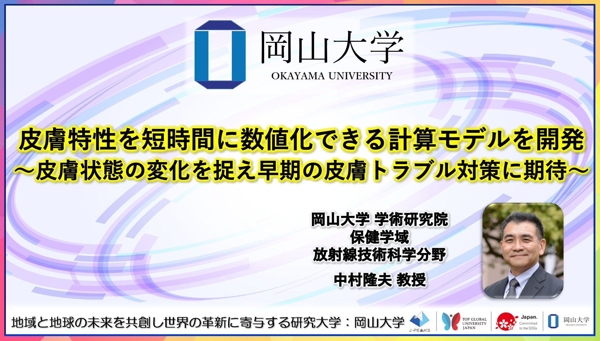 【岡山大学】皮膚特性を短時間に数値化できる計算モデルを開発~皮膚状態の変化を捉え早期の皮膚トラブル対策に期待~