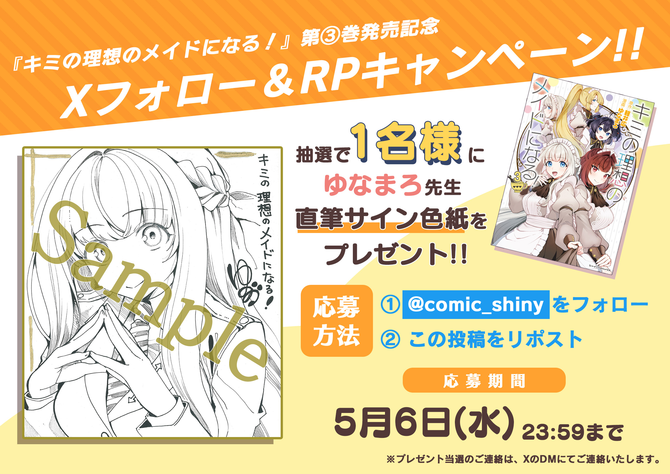 Xフォロー&RPキャンペーン開催!シャイニーコミックス『キミの理想のメイドになる!』ゆなまろ先生直筆サイン色紙プレゼント!