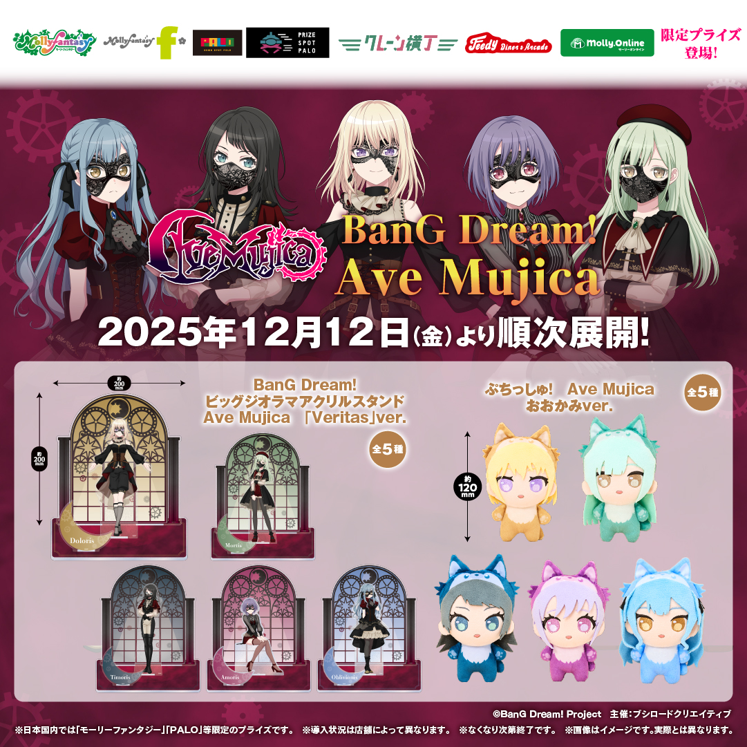 「BanG Dream! Ave Mujica」のプライズ景品が2025年12月12日(金)よりモーリーファンタジー・PALOにて登場決定!