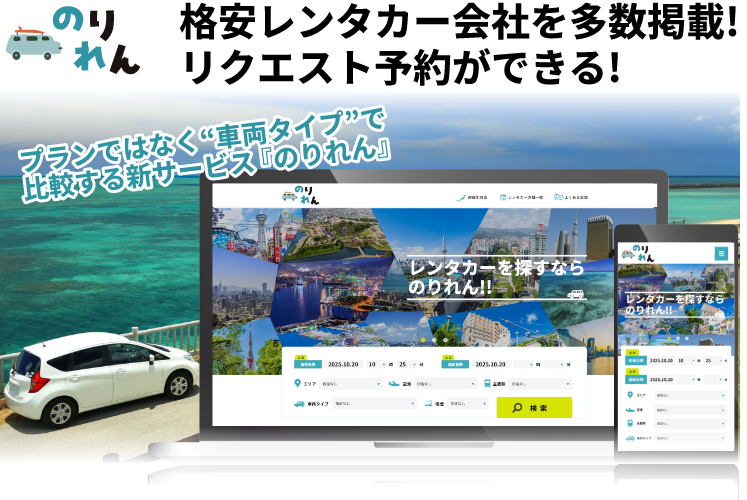 旅行・出張のタイパを最大化!全国のレンタカーを「車両タイプ別最安値」で一括比較できる『のりれん』がサービス提供開始。