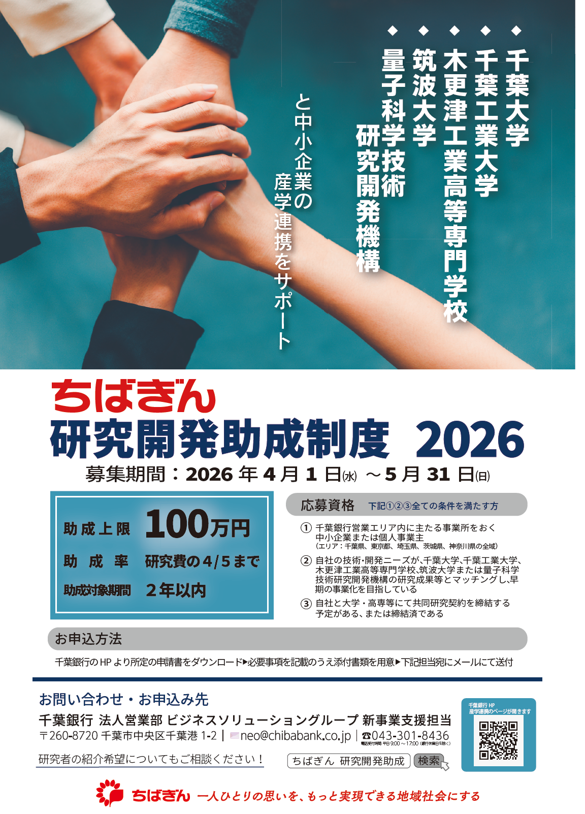 「ちばぎん研究開発助成制度2026」の募集について~中小企業と大学・高専等との産学連携をサポート~