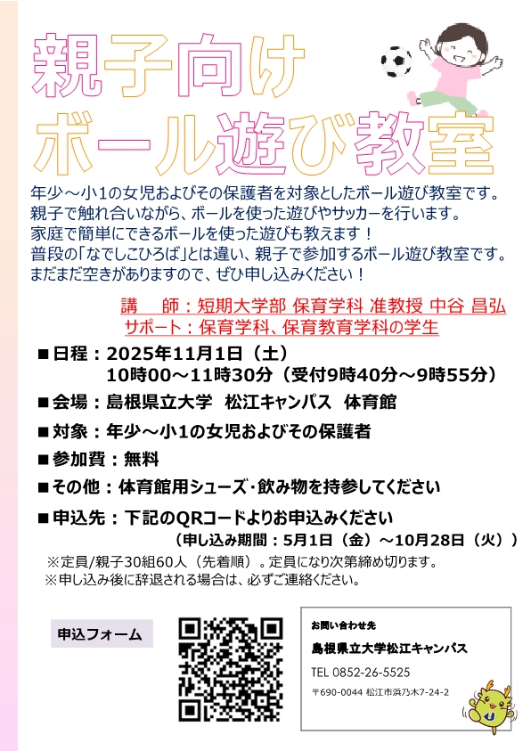親子向けボール遊び教室を11月1日(土)に開催します -