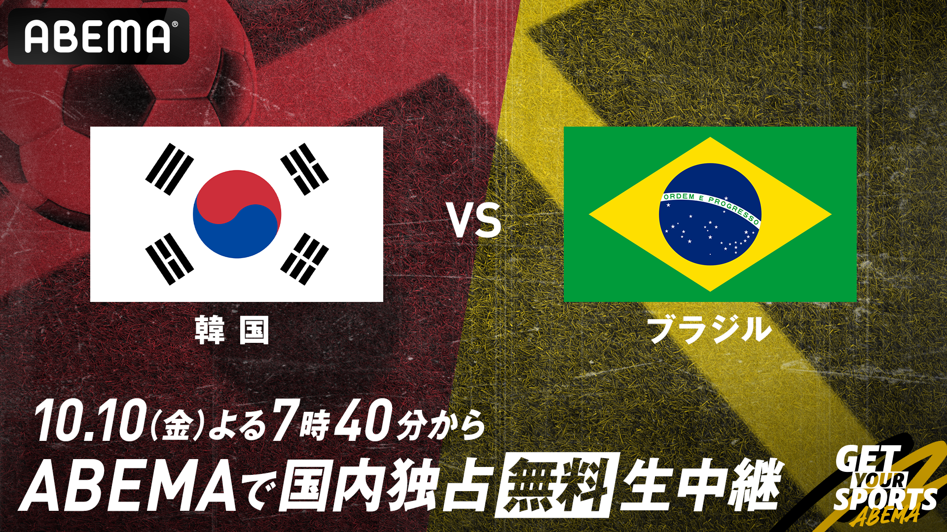 「ABEMA」、『韓国代表vsブラジル代表』を10月10日(金)よる7時40分より無料生中継 ~アジア屈指の韓国代表がサッカー王国ブラジルに挑む注目の一戦、解説に柿谷曜一朗が決定~ -