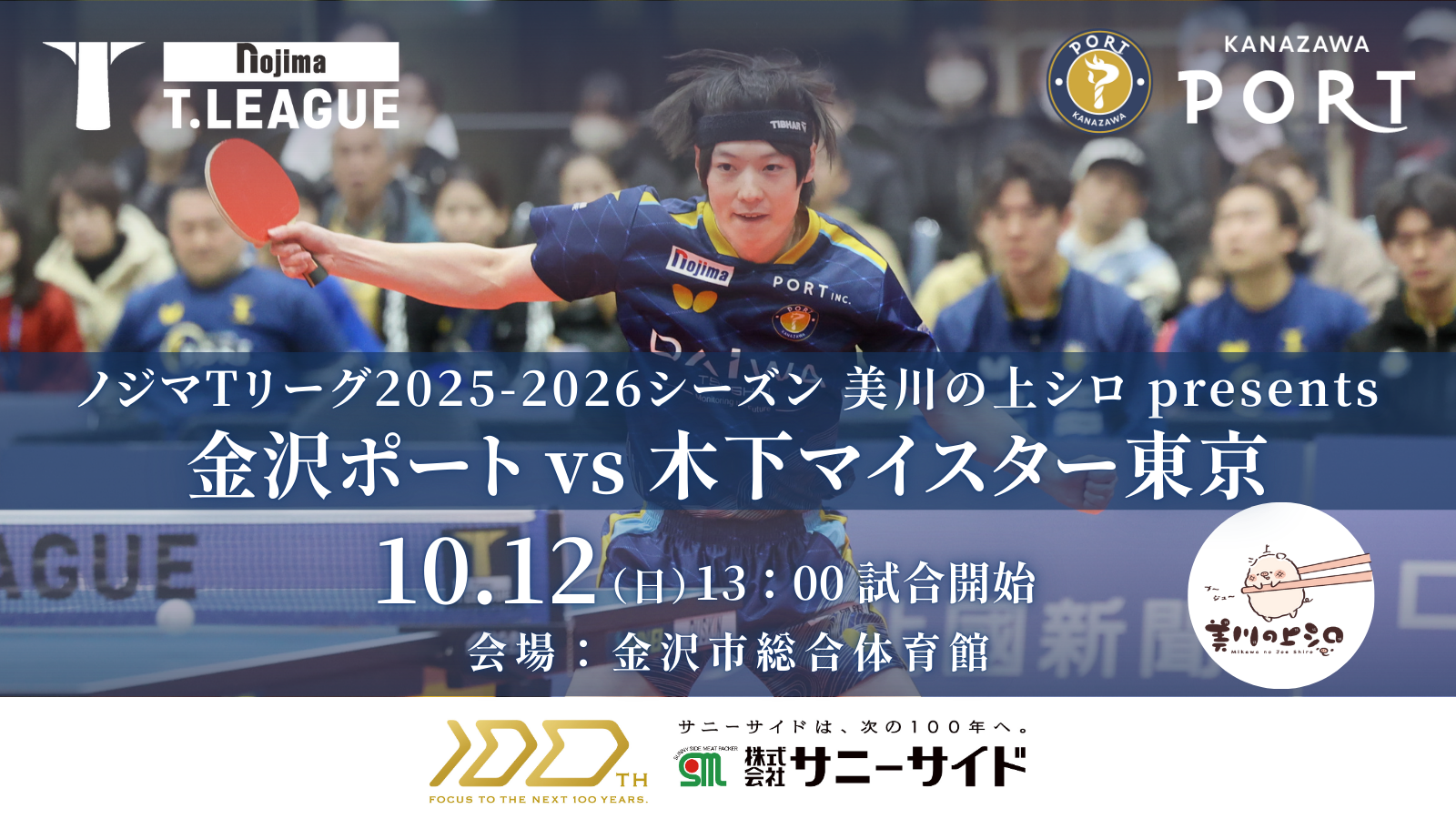 【Tリーグ金沢ポート】10/12『美川の上シロ presentsマッチ』開催のお知らせ -