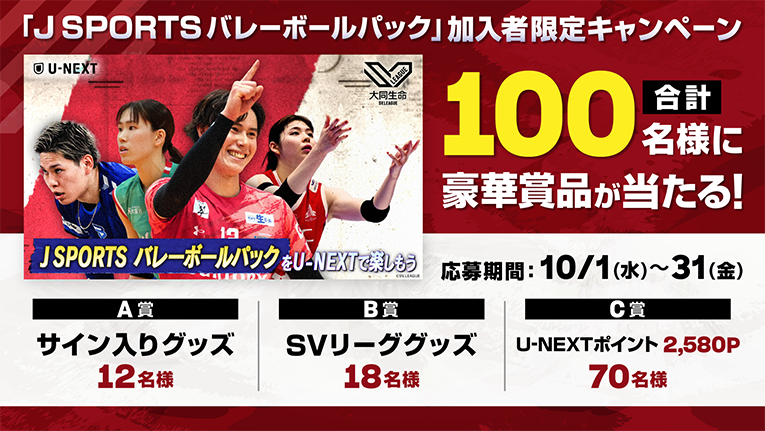 選手サイン入りグッズなど100名に当たる!『大同生命SVリーグ 2025-26』開幕記念「J SPORTS バレーボールパック」加入者限定キャンペーン実施決定 -