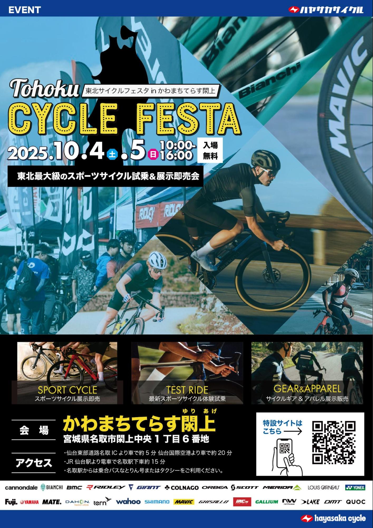 東北最大級のスポーツサイクルフェスティバル「東北サイクルフェスタ 2025」が、10月4日(土)・5日(日)宮城県名取市 特設イベント会場「かわまちてらす閖上」にて開催! -