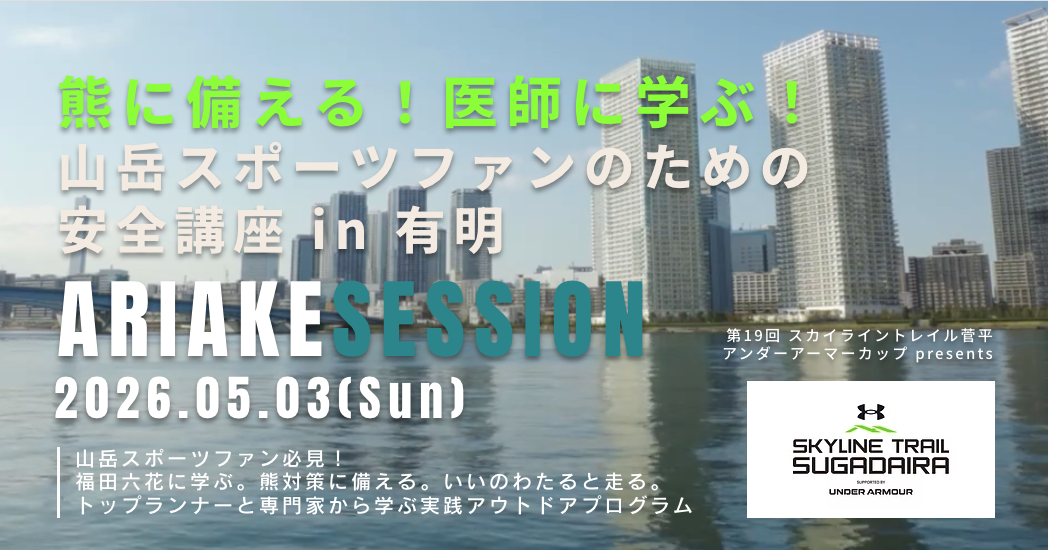 【2026年5月3日開催】熊に備える!医師に学ぶ!いいのわたると走る!トレイルランナーのための安全講座 in 有明『有明アウトドア・チャレンジセッション』